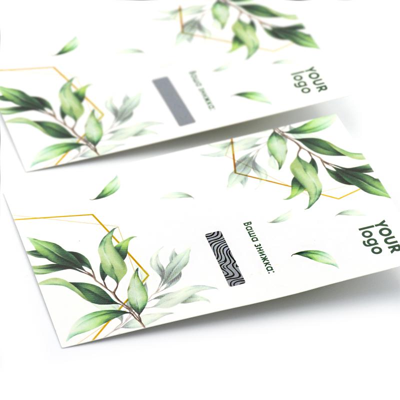Открытка с логотипом "скретч нанесения и отрывная часть"