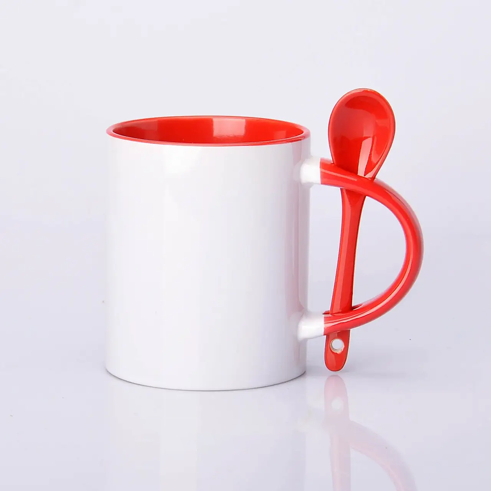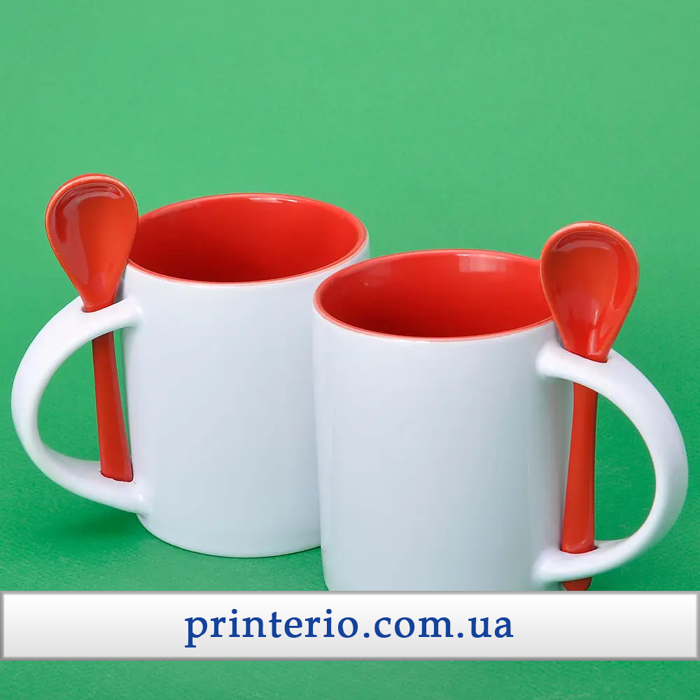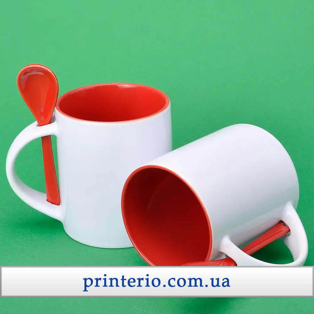 Чашка для сублімації Sublimeз лого біла кольорова всередені з ложкою 330 мл