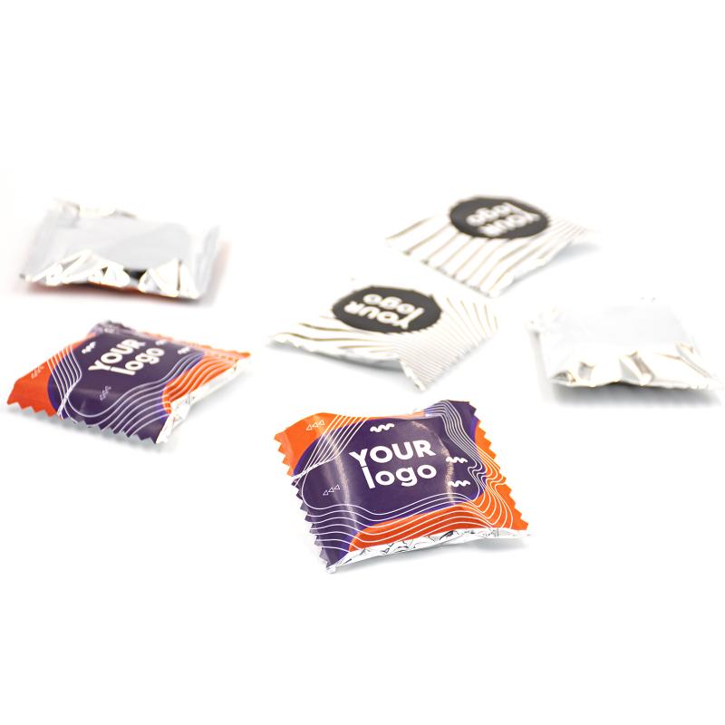 Печиво "Oreo" з логотипом (11 г) — це класичне печиво з шоколадними пластинками та кремовою начинкою, що підходить для брендування на промо-акціях. Виріб упакований в індивідуальну упаковку з логотипом, виготовлену з поліпропіленової плівки, що дозволяє зберегти свіжість і презентабельний вигляд. Такий формат ідеально підходить для корпоративних заходів, виставок або ділових подарунків, створюючи додаткову впізнаваність бренду.