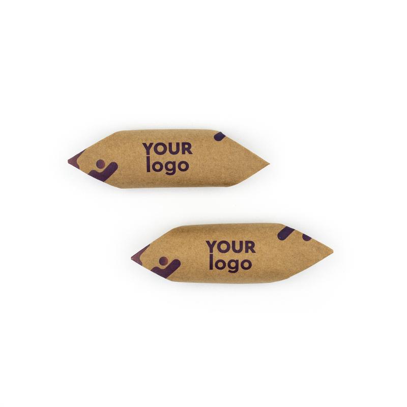 Цукерка "Червоний мак" з логотипом вагою 13 г виготовлена з праліне з фундуком у шоколадній глазурі. Запакована в крафтовий папір і доступна для повнокольорового друку. Термін придатності - 10 місяців, а виробництво займає 5-14 робочих днів. Підходить для корпоративних подарунків та брендингу.