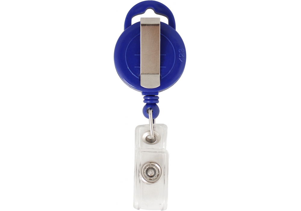 Держатель для бейджа Optima с рулеткой для вашего логотипа, синий, форма круга