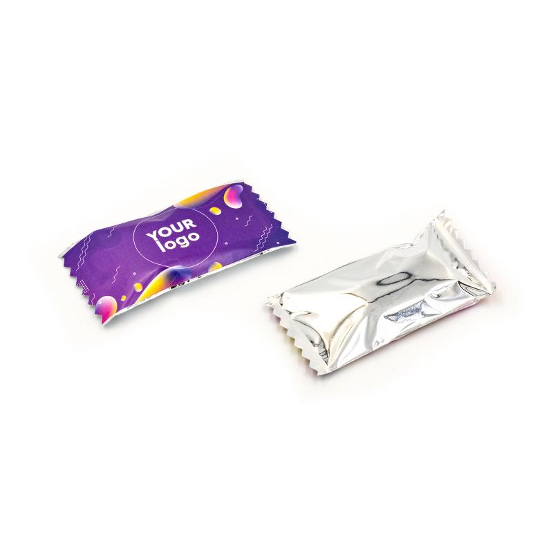 Конфета "Шоколапка" с логотипом (6 г) – это небольшая сладкая конфета с нежным тоффи и арахисом в глазури. Брендированная упаковка позволяет добавить цветной логотип, подходящий для корпоративных подарков или рекламы на мероприятиях. Размер упаковки – 62×36×8 мм, срок годности – 12 месяцев. Предлагается выбор между прозрачной и металлизированной пленкой.