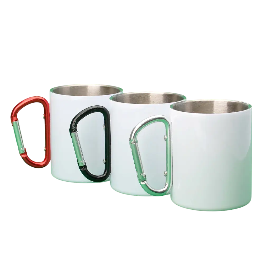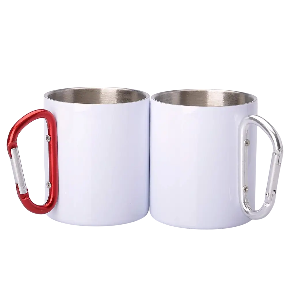 Кружка металлическая белая Sublime для сублимации с ручкой-карабином 330 мл с логотипом