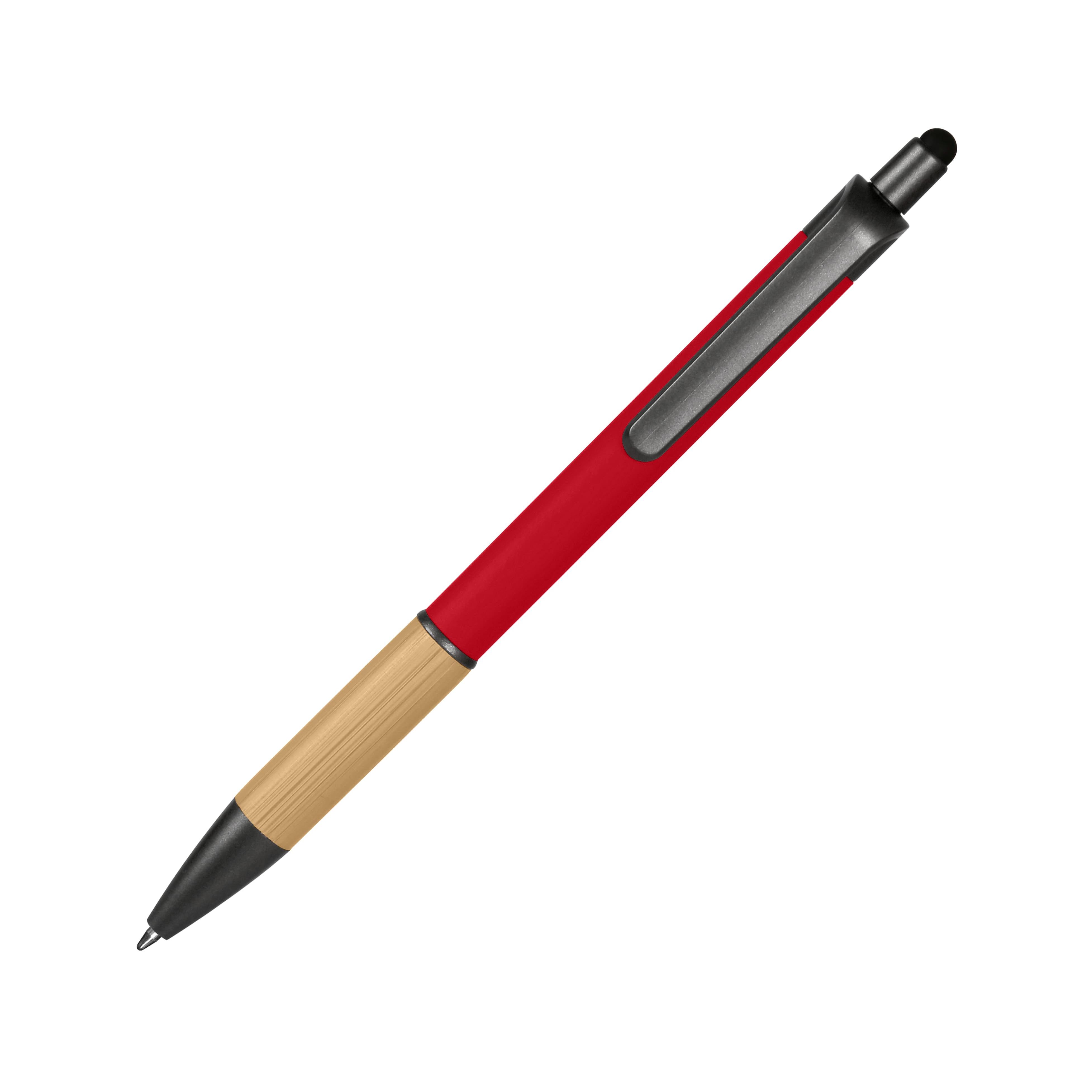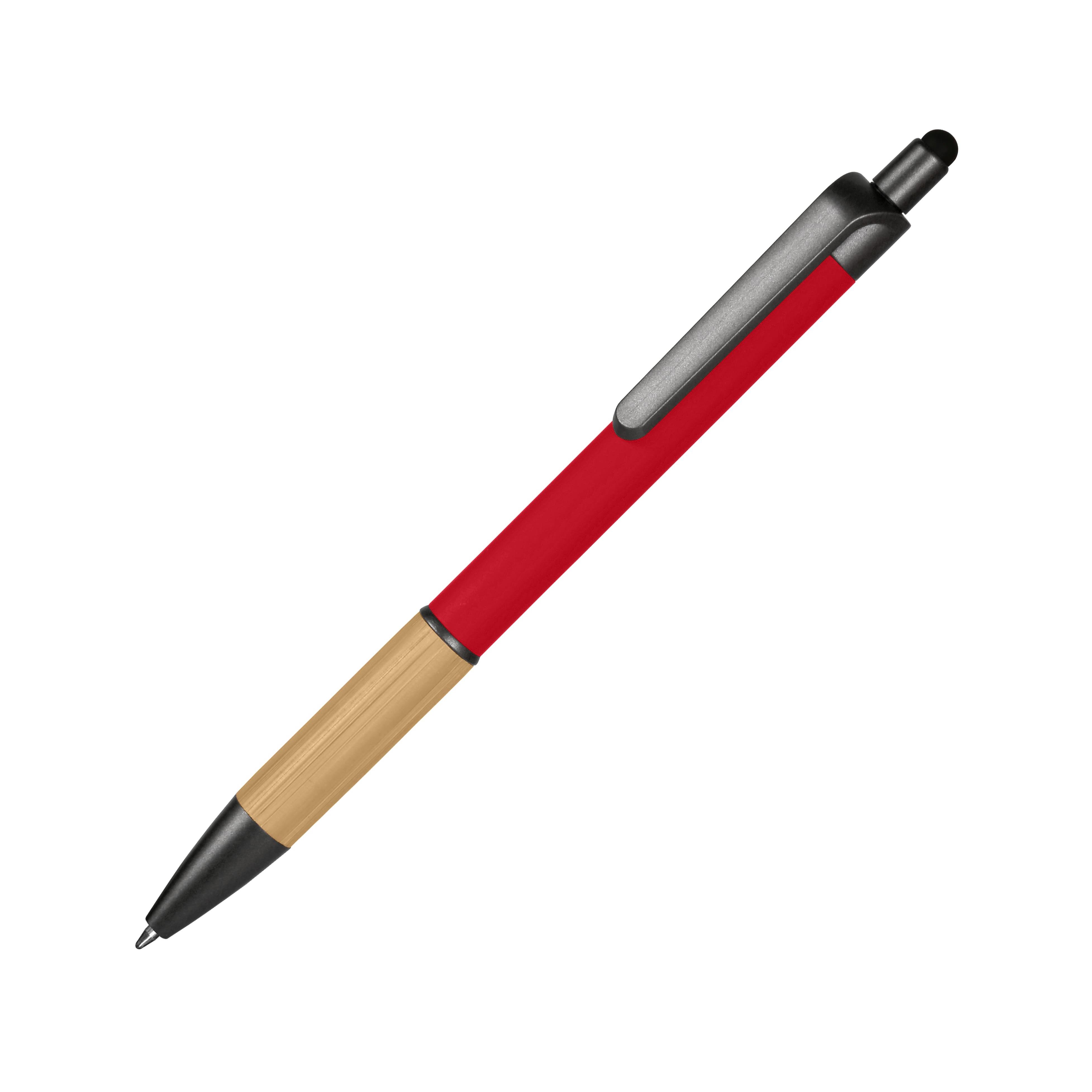 Ручка-стилус шариковая, корпус металлический с покрытием софт-тач, бамбуковая вставка, клип из пластика. Стержень с синими чернилами. Рекомендуемый метод нанесения – гравировка, УФ-печать. Материал: металл, пластик, силикон