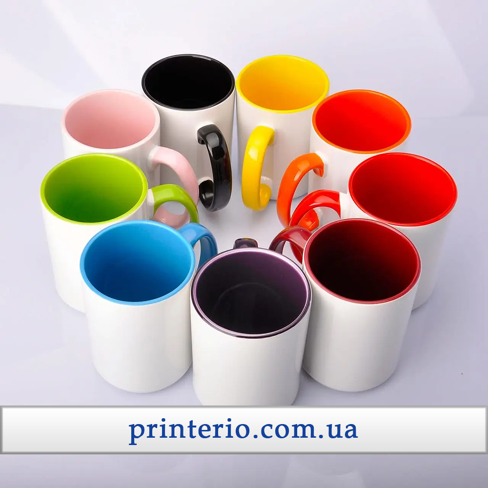 Чашка для сублімації кольорова всередині та з кольоровою ручкою 425 мл – стильний подарунок з індивідуальним дизайном.