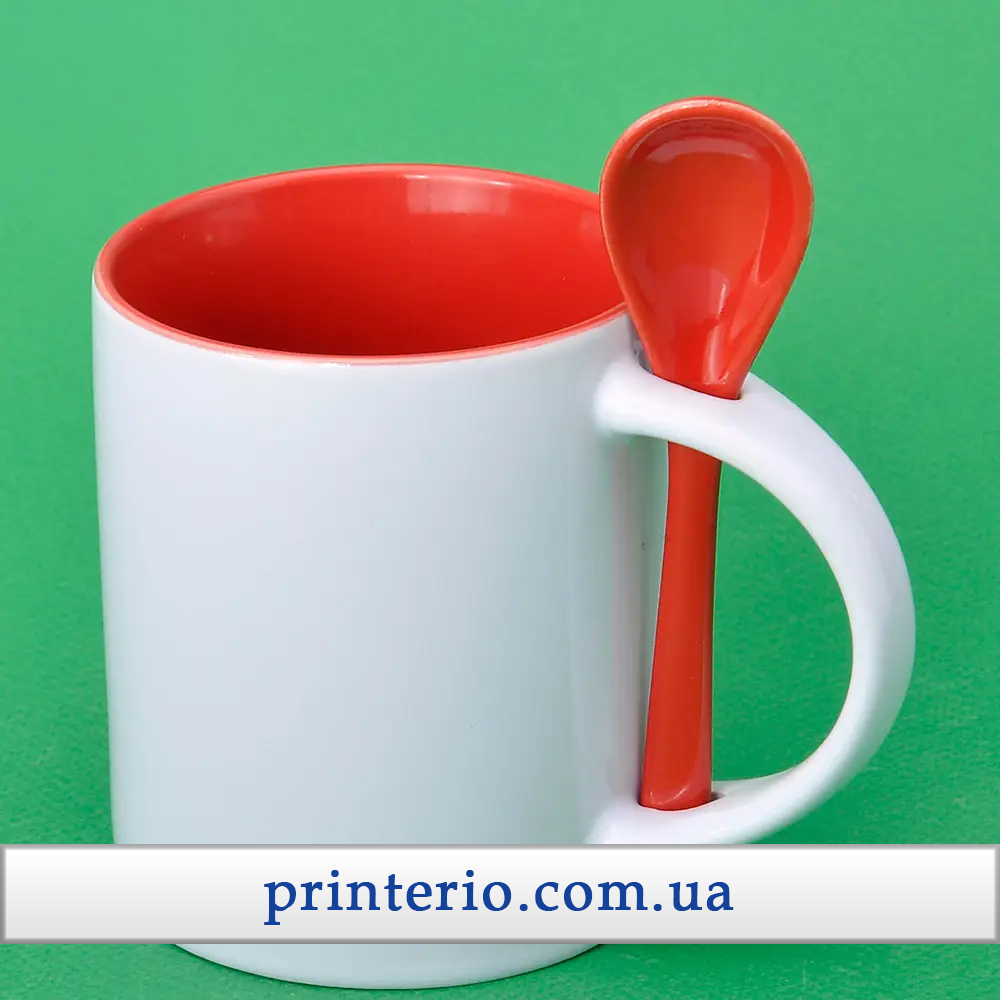Чашка для сублімації Sublimeз лого біла кольорова всередені з ложкою 330 мл