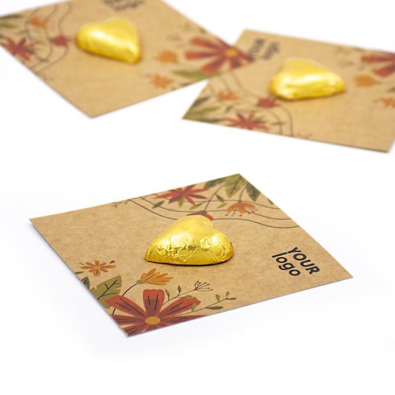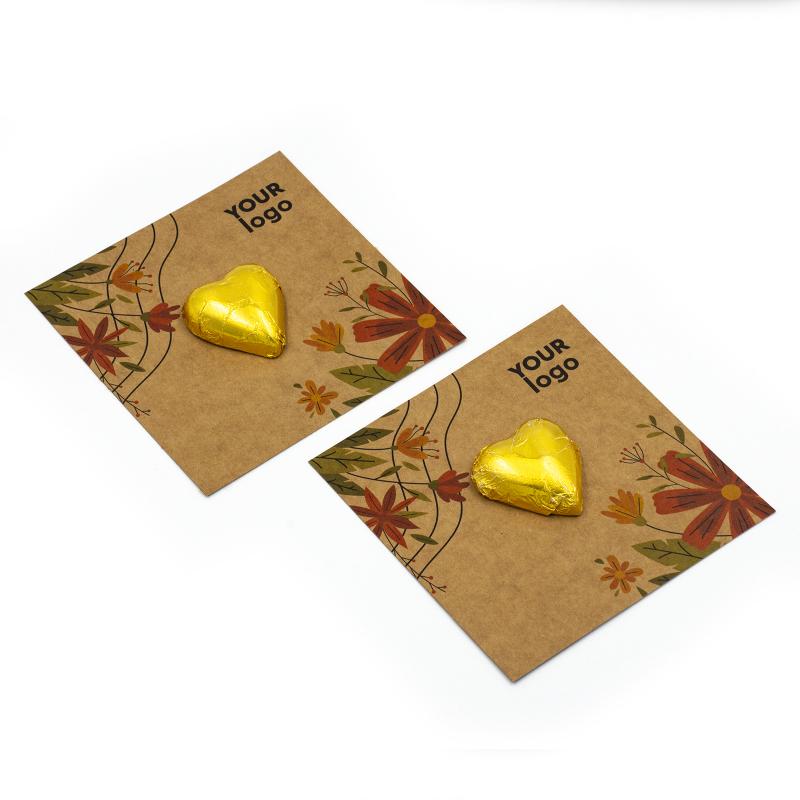 Листівка з логотипом (7,5 г, крафт) — брендована шоколадна листівка з преміального німецького молочного або чорного шоколаду. Виготовлена в екологічній крафтовій упаковці з повноколірним друком, вона має розмір 100 х 100 х 7 мм і служить ідеальним корпоративним сувеніром.