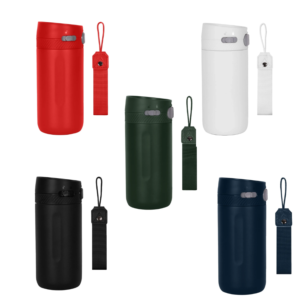 Вакуумна термокружка Stay це високоякісний продукт з нержавіючої сталі 304, вкрита матовою кольоровою емаллю. Кришка з нажимною кнопокою, яка відкриває клапан при необхідності надійно блокується слайдером від випадкового відкривання. Підтримує температуру до 6 годин